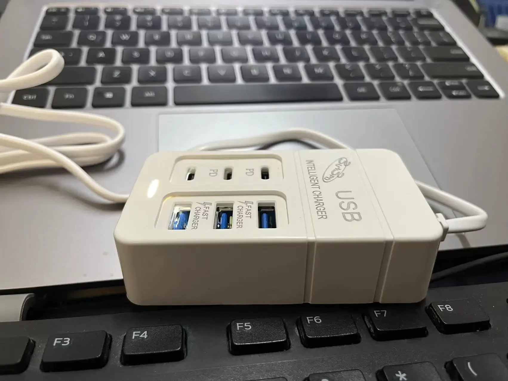 This 6-in-1 USB charger acts as a versatile charging hub, supporting multiple devices simultaneously, enhancing convenience.